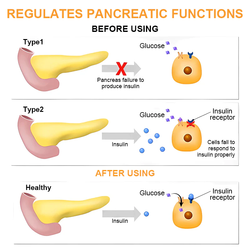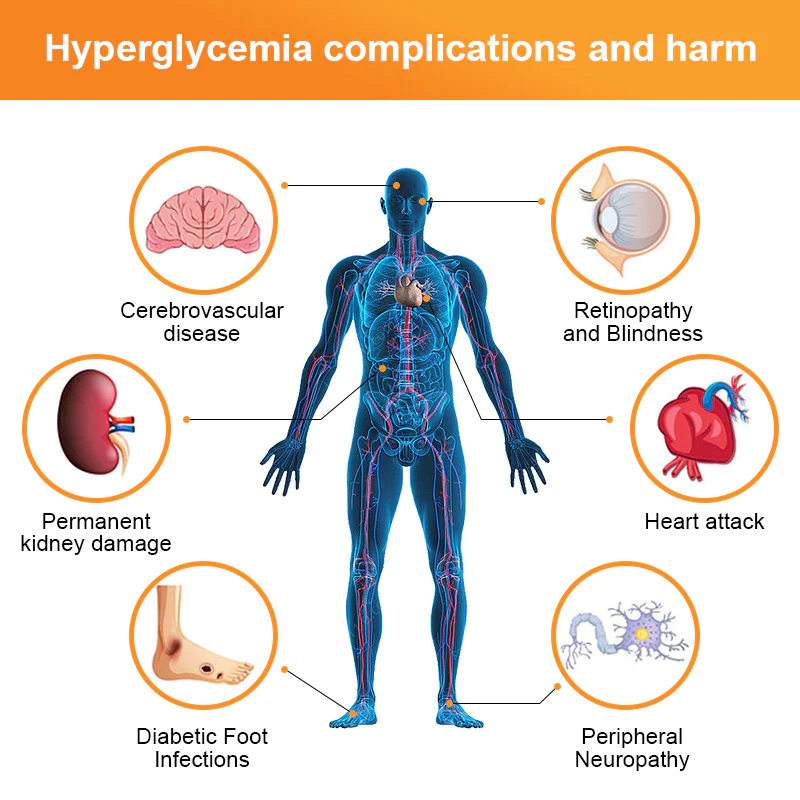 ✔Eliminates hyperglycemia complications, such as stroke, heart disease